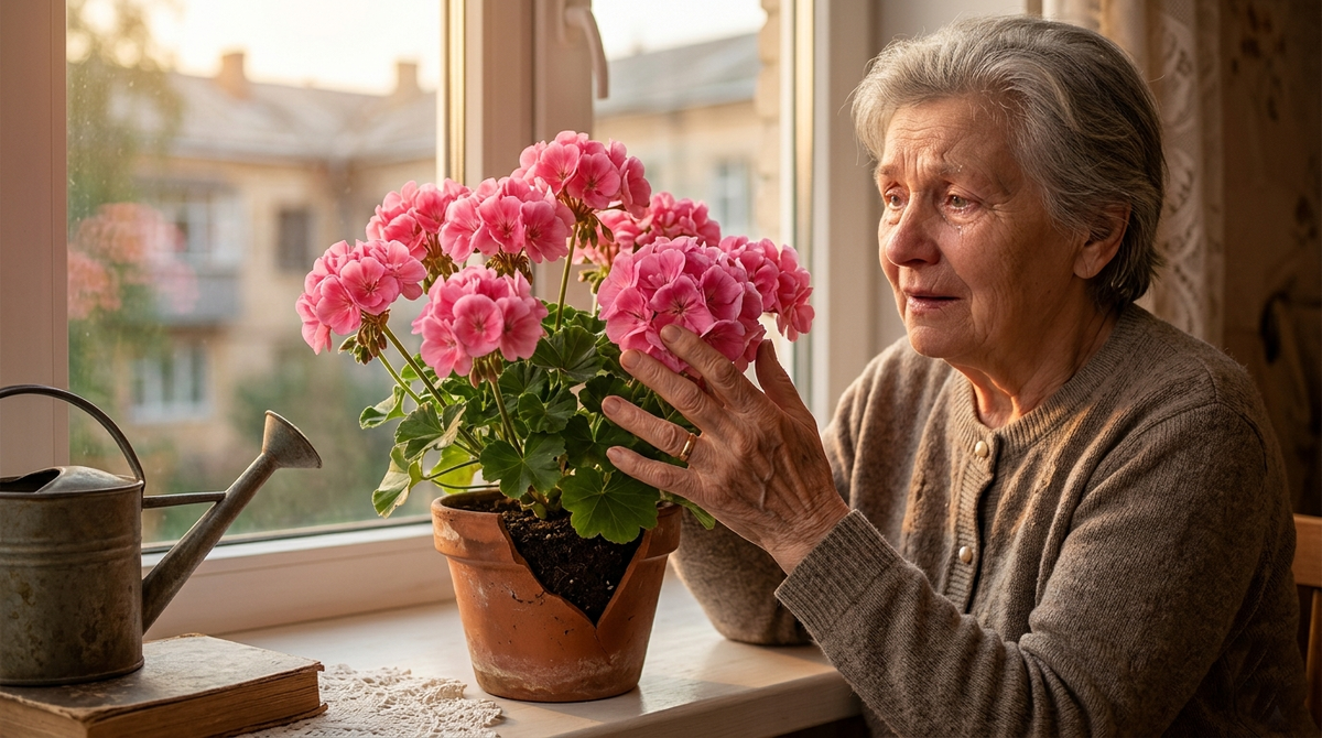 Она подбежала к той самой старой герани — прародительнице всего этого великолепия. Клавдия Петровна бережно пересадила её в новый, красивый горшок, но тот самый скол на старом глиняном черепке, который она сохранила на память, лежал на дне как талисман.