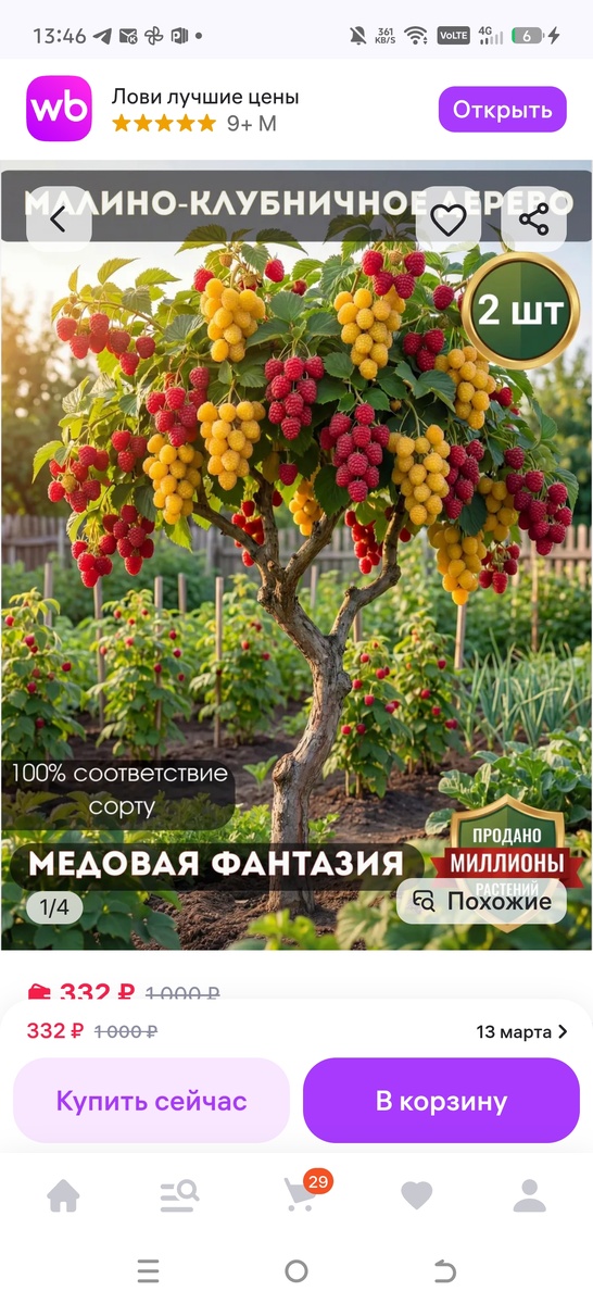 Так и представляю себя среди плантаций клубнико- малины, сзади колосятся какие нибудь невероятные полосатые лилии, сразу за ними черно розовые розы и бесконечные поля винтовой смородины 🤣🤣🤣 Нет, фантазия, конечно диво как хороша у того кто это все придумал, прям современные Остапы Бендеры. Надеюсь, что и покупатели тоже понимают, что это обман и просто хотят верить в чудо) Но вообще, конечно, задрали уже эти нейросетевые карточки, когда непонятно что тебе придёт -саженец малины или какое-нибудь чернобыльское чудо. Надо уже на законодательном уровне запрещать подобные карточки, потому что все-таки это прямой обман покупателя и мошенничество, хоть мы и хихикаем, но народу ведётся огромное количество.