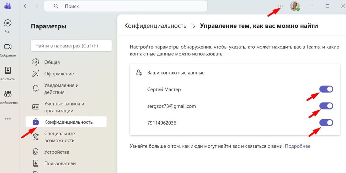 ? Вас не могут найти по телефону или почте? Это не ошибка и не сбой. В Teams поиск работает только в том случае, если вы разрешили, по каким данным вас можно находить. Если эти параметры выключены — контакт существует, но найти его невозможно. Проверяется за 15 секунд. Откройте Teams: — три точки рядом с аватаркой — Параметры → Конфиденциальность Далее: «Управление тем, как вас можно найти» И включите: — телефон — почта — имя После этого вас смогут найти и спокойно связаться. Простая настройка, которая часто блокирует связь. #Teams Master S