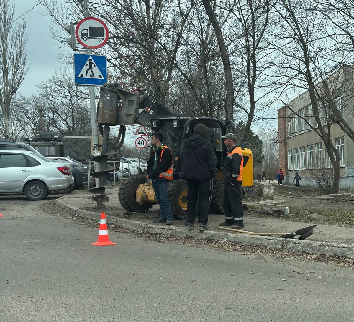 Устанавливают новые дорожные знаки на ул. Ермощенко в Макеевке