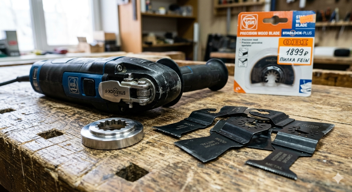 Когда я начал капитальный ремонт в прихожей, мне позарез понадобился хороший реноватор для подрезки плинтусов и дверных коробок. Я не поскупился и взял отличный мультитул от Bosch с хваленым инновационным креплением Starlock. Инструмент резал как по маслу, пока я случайно не напоролся на скрытый саморез. Комплектная пилка мгновенно лишилась зубьев. Я пришел в строительный магазин за новой расходкой, поправил очки, чтобы вчитаться в ценник на витрине, и просто замер. Одна оригинальная насадка стоила 1500 рублей! С математикой у меня все отлично, поэтому я в уме быстро прикинул: десяток таких оригинальных пилок для разных задач обойдется мне дороже самого мультитула. Отдавать тысячу с лишним за кусочек металла, который может сгореть на одном гвозде, я был категорически не готов. Система Starlock была разработана компаниями Bosch и Fein официально для максимально жесткой фиксации насадки и передачи крутящего момента без потерь. Однако на практике этот интерфейс работает как жесткое аппара