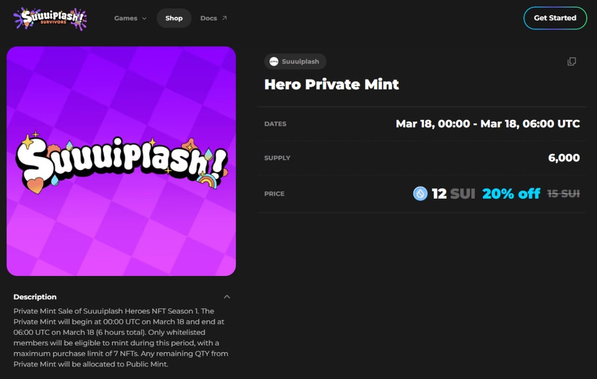 Suuuiplash — апдейт инфы👇🏻 Что добавилось по проекту: — Поддержка NHN (корейский геймдев, ~$1.7B выручки в 2024 году) — Проект пушится как один из GameFi-флагманов в экосистеме SUI — Поддерживается Sui Foundation. Недавний пост здесь — Токены команды разблокируются только при удержании цены выше х2 Последний пункт снижает давление со стороны команды на старте По минту: • WL — 12 SUI • Public — 15 SUI • Supply: 8,040 (в продаже 6,000) Если часть не раскупят — NFT уйдут в игру / остаток сжигается Инфа по минту — здесь Страница минта — здесь Минт уже сегодня ночью — дальше всё решит рынок. #P2E