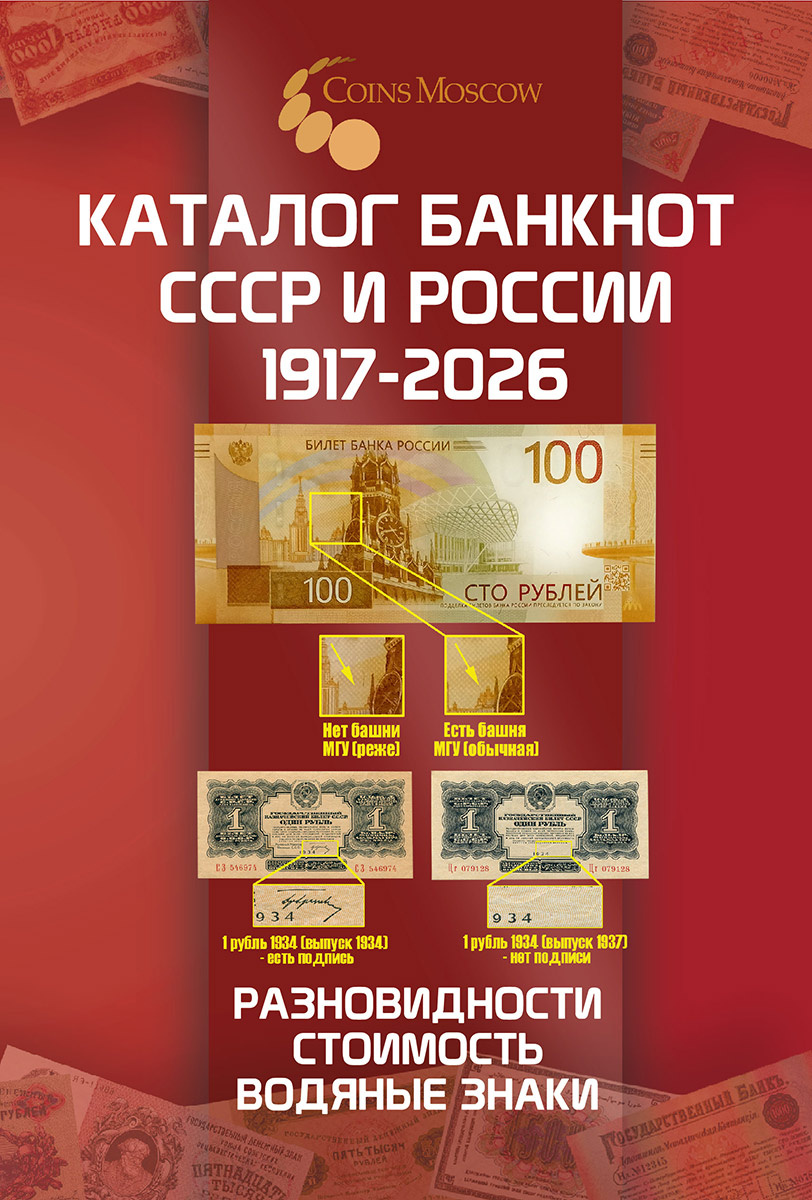 Каталог банкнот СССР и России 1917-2026 CoinsMoscow, 5-й выпуск (с ценами)