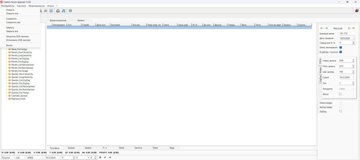 Выпущена новая версия программы. - доработан функционал по работе с инструментами, теперь при запуске программы автоматически будут открываться все инструменты, которые были сконфигурированы ранее. - добавлены проверки корректной настройки дельта-хеджера, чтобы уменьшить возможные пользовательские ошибки при работе с ним. - внесены корректировки при отображении графиков. - внесен ряд других доработок в программу для улучшения ее работы Те, кто уже пользуется программой, могут скачать обновление по следующей ссылке и из скачанного архива обновить у себя именно файл программы OptionServer.exe https://quantpro.ru/downloads/OptionServer_7.2.0.7z Если у Вас возникнут вопросы при обновлении версии программы или Вы новый пользователь, желающий установить себе «Опционный модуль» впервые, пишите в Телеграм @vyacheslav_zam для получения дополнительной информации или можете задавать вопросы в комментариях к данному сообщению. Телеграм работает все хуже, поэтому приглашаю Вас подписаться на мои др
