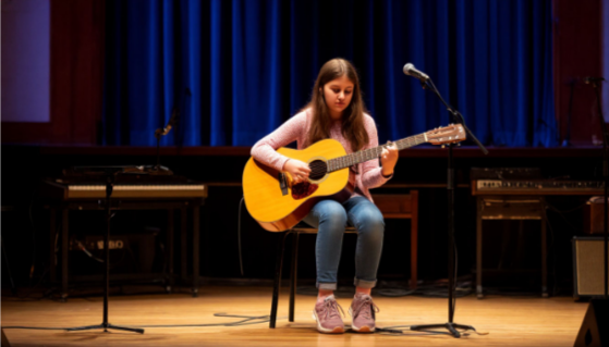 Когда Алиса вышла на сцену со своей гитарой, он замер. Это была не его строптивая дочь. Это был другой человек — собранный, серьёзный, красивый. Она села, закрыла на мгновение глаза, и заиграла.