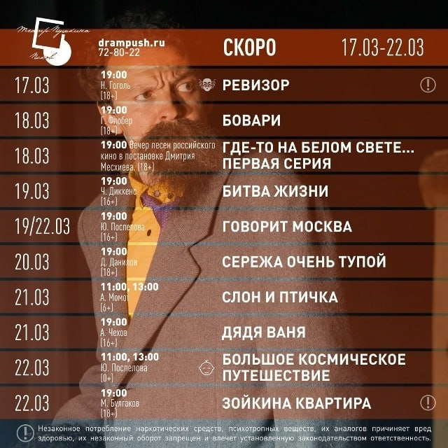 Театральная неделя 17–22 марта в Псковском театре драмы им. А. С. Пушкина 🎭