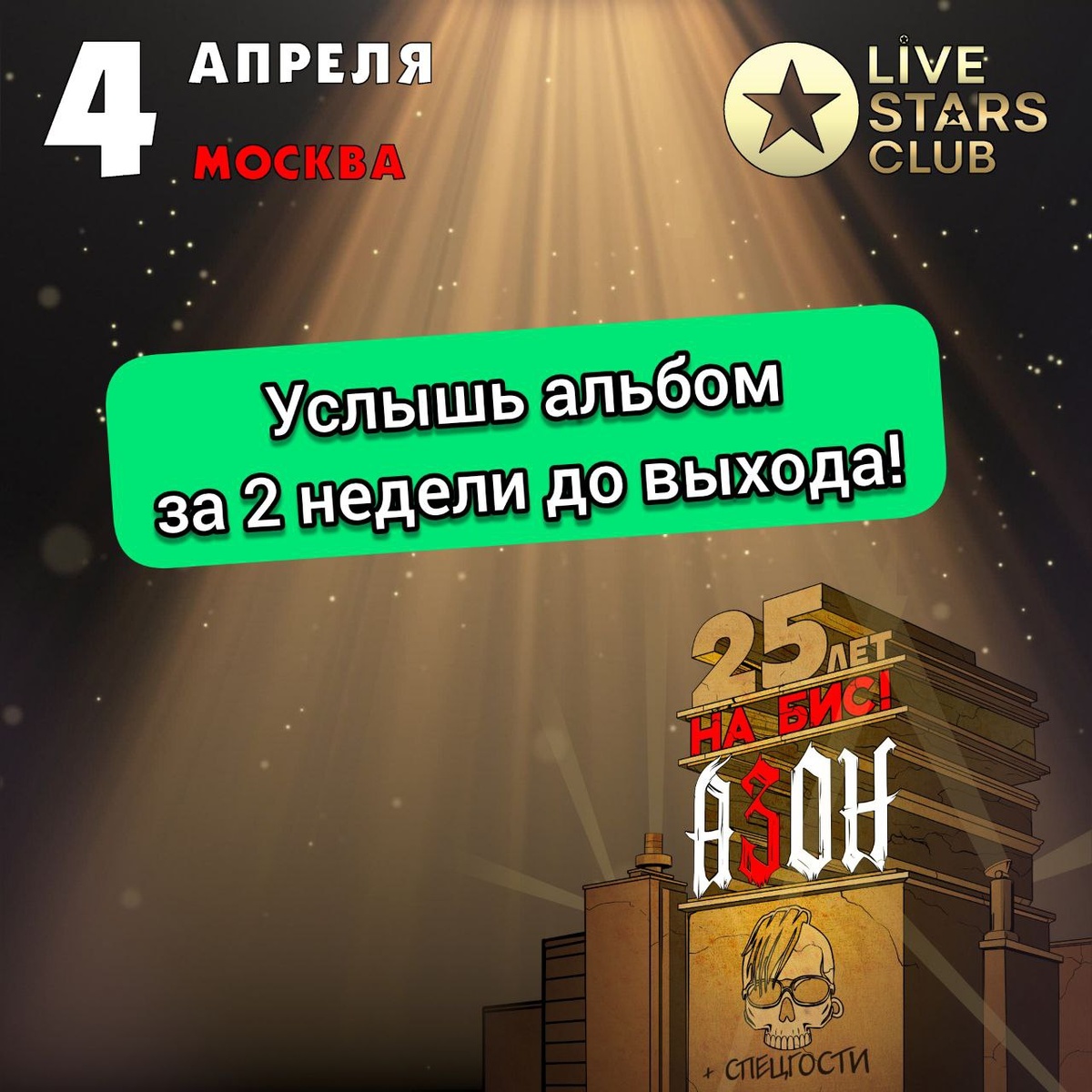 : — Возможность войти на московский концерт 4 апреля сильно раньше других и потусоваться с нами; — Попадут к нам на саунд-чек и в гримерку; — Получат меганабор мерча; — И, главное, возможность услышать наш новый альбом за 2 недели до официального релиза! Заманчиво? Билеты здесь: az0n.ru