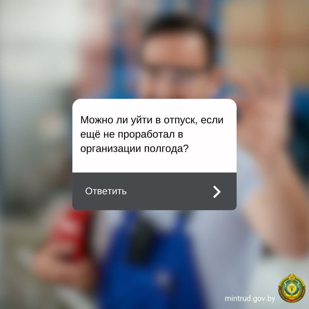 ? ➡️Общее правило Работник имеет право уйти в трудовой отпуск не ранее чем через 6 месяцев работы у нанимателя. Это касается отпуска за первый рабочий год, который исчисляется со дня приема на работу. 👀 Пример Если работник устроился 16 марта 2026 года, право на отпуск у него возникает с 16 сентября 2026 года. ☝️Исключения Отпуск может быть предоставлен до истечения 6 месяцев определенным категориям работников ✅Несовершеннолетние; ✅Женщины перед отпуском по беременности и родам или после него; ✅Работники, принятые в порядке перевода от другого нанимателя; ✅Родители детей-инвалидов или двоих и более детей до 14 лет; ✅Совместители, если их отпуск на основной работе совпадает с периодом у данного нанимателя; ✅Работники, совмещающие работу с получением образования; ➕В иных случаях, предусмотренных коллективным договором, соглашением или трудовым договором. 🪖Кстати, работающим супругам военнослужащих по их желанию трудовой отпуск предоставляется одновременно с отпуском супруга. ⌛ Дос
