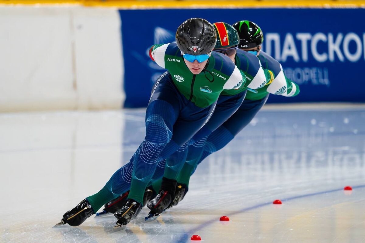 Две золотые, две серебряные и бронзовую медали завоевали спортсмены Приангарья на первенстве России по конькобежному спорту на отдельных дистанциях. В соревнованиях, которые с 9 по 13 марта проходили в Ледовом дворце «Крылатское» в Москве, участвовали 89 юниоров и юниорок 18-19 лет из 17 регионов. Об этом 16 марта 2026 года сообщила пресс-служба министерства спорта региона. Никита Тарасов стал победителем на дистанциях 500 и 1000 м. На 1000 м он установил новый рекорд катка. Все конькобежцы занимаются в областной СШОР «Сибскана» под руководством Ольги Тарасовой. Фото: ТГ-канал министерства спорта Иркутской области, предоставлены тренером