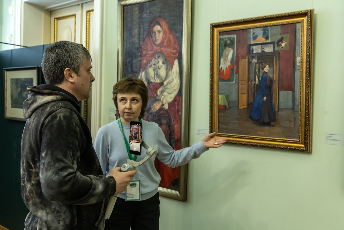 – Если мы посмотрим старые фотографии конца 20-х - начала 30-х годов, то эта работа, наша замечательная Маруся, она так и висит примерно на том же самом месте, где и сейчас, – продолжает Наталья Бакина, – в 1969 году именно в этом зале музея, двусветный зал, выставочного зала тогда ещё не было, открылась первая персональная выставка Елены Андреевны. На эту выставку она передала из Белграда оставшиеся у нее работы, живопись, графику, рисунки в наш музей. Это порядка 20 картин.