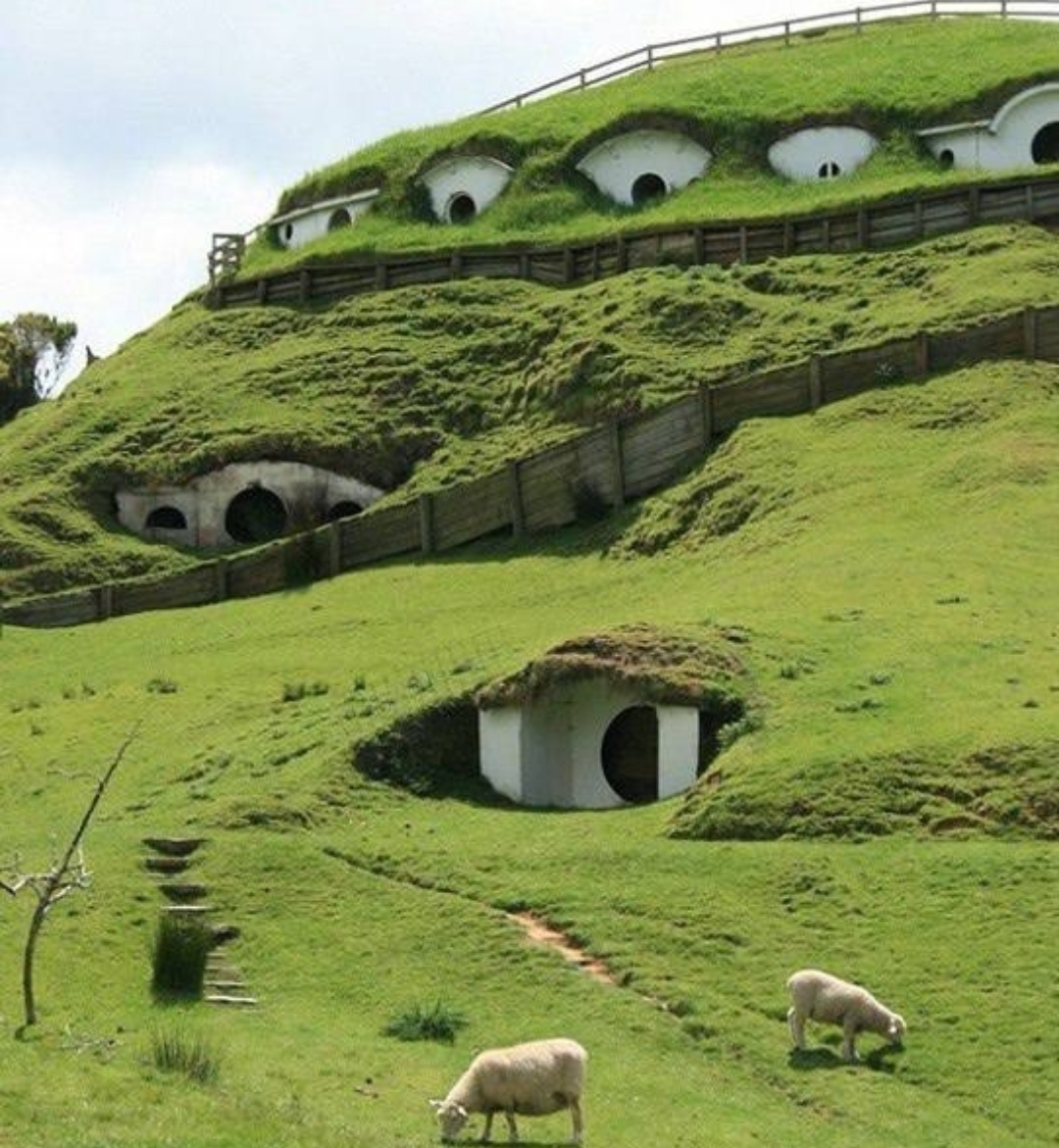 Когда голливудская суета улеглась, законными хозяевами Средиземья стали местные овцы. Для них хоббитские норы оказались идеальным укрытием.
