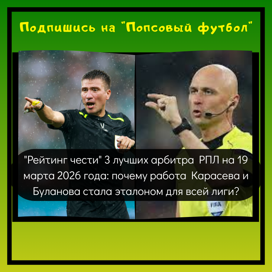 Всем здравствуйте! Говорят, что лучший судья на поле - тот, кого не замечают. Но в реалиях РПЛ 2026 года, когда каждый стык рассматривается под микроскопом VAR, оставаться "невидимым" и при этом сохранять полный контроль над игрой - это высший пилотаж. Пока одни арбитры тонут в бесконечных консультациях с видеоассистентами, другие берут на себя ответственность и возвращают нам веру в честный футбол, которого нам так не хватает в 2026-м. По итогам протоколов 21-го тура и статистики сезона, вот список тех, кто не "поплыл" под давлением трибун и авторитета тренеров. Вот они - герои свистка, чья работа заслуживает аплодисментов. Оценка в 21-м туре: 8.4 (максимальный балл) Матч "Зенит" - "Спартак" 15 марта 2026 года мог стать кладбищем для любого арбитра, но только не для Карасева. В условиях колоссального давления Сергей выдал мастер-класс по управлению эмоциями. Оценка в 21-м туре: 8.4 Если Карасев - это опыт, то Буланов в сезоне 2025/2026 - безупречная механика судейства. Его работа на