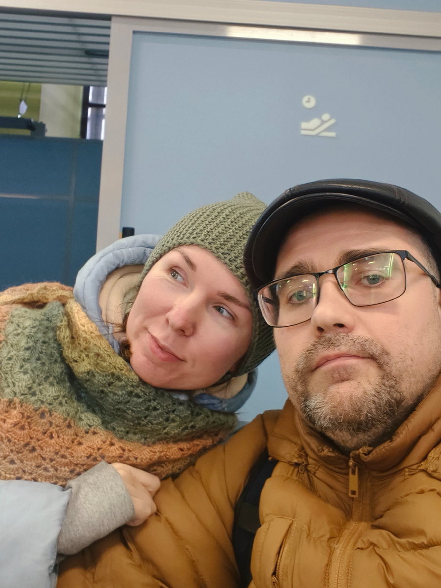 5:45 - Машина уже у ворот, слышу как гудит мотор. А мы ещё не собраны.