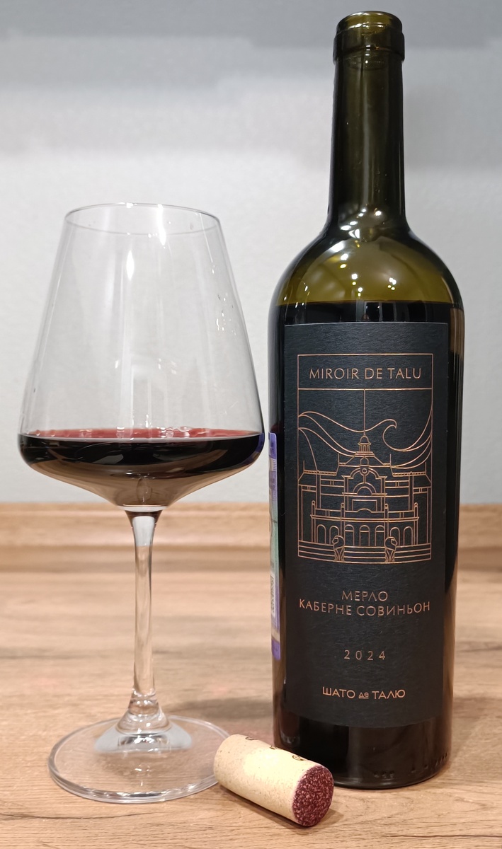 Красное, сухое, 13-15% Винодельня: Шато де Талю, Россия Регион: Кубань, Геленджик Виноград: Мерло, Каберне Совиньон Урожай: 2024 Розлив: 18.11.25, 25108 ... Metro CC, февраль 2026 Аромат: Не очень яркий, какие-то черные ягоды, немного скотинки и сдобной плюшки. После продышки 45-60 мин. скотина с плюшкой ушли в закат, и на сцену нехотя вышли ягоды, но все так же усредненно-не раборчиво, просто стали чуть ярче. Вкус: Ниже среднего по плотности, повторяет аромат. Сладости чуть не хватает, кислотность выше средней, и при такой низкой сладости доминирует. Танины выше среднего, но не кусаются. Послевкусие среднее - короткое. Было интересно сравнить эту линейку с Miriades и Сюжет, что были ранее от этой же винодельни. И пока что Miriades лидируют. В целом все ровно, поругать особо не за что, только если за дисбаланс сладости/кислотности, но и похвалить так же нет особых причин. До 500р, не более. Просто столовое вино под макароны по-флотски.