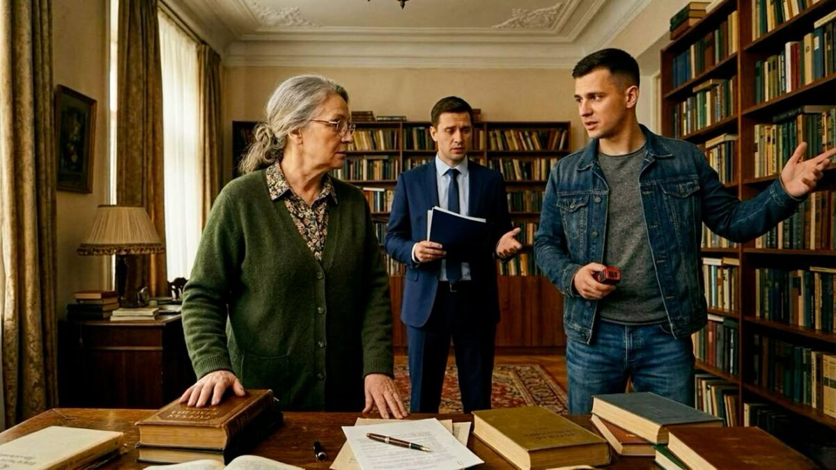 Марк видел, как Мария Сергеевна побледнела. Её взгляд замер на корешках книг — тех самых, которые её муж, филолог, собирал всю жизнь. Они познакомились в университете, вместе расставляли тома по алфавиту, вместе переезжали в эту квартиру сорок лет назад. Каждая книга была частью их общей истории.