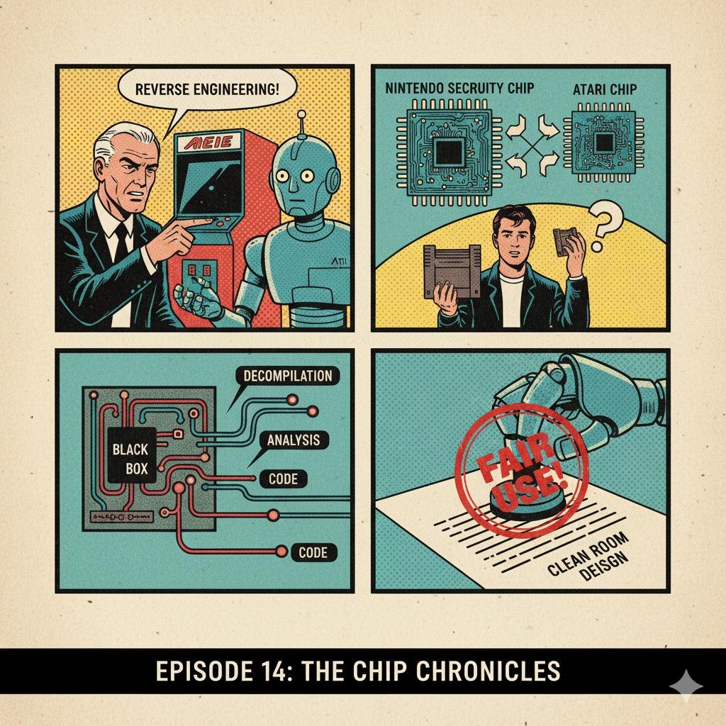 💻 САГА О ПИКСЕЛЯХ И ПАТЕНТАХ Часть 14. Atari Games Corp. v. Nintendo of America Inc. (1992): битва за чип 10NES. Это дело стало одним из самых сложных и значимых в истории индустрии, поскольку оно столкнуло лбами защиту авторских прав, антимонопольное законодательство и зарождающуюся доктрину добросовестного использования применительно к обратной разработке. 🍜 Прелюдия: Чтобы избежать повторения краха 1983 года, вызванного неконтролируемым потоком некачественных игр, Nintendo встроила в свою консоль NES систему блокировки 10NES. Эта система состояла из двух чипов: «замка» в консоли и «ключа» в лицензионном картридже. Без успешного «рукопожатия» между ними игра не запускалась. Atari Games (аркадное подразделение, отделенное от Atari Corp.) хотела выпускать игры для NES без соблюдения строгих лицензионных условий Nintendo (например, ограничения в пять игр в год). 😡 Конфликт: После неудачных попыток взломать 10NES путем обратной разработки (анализа чипов), Atari пошла на обма