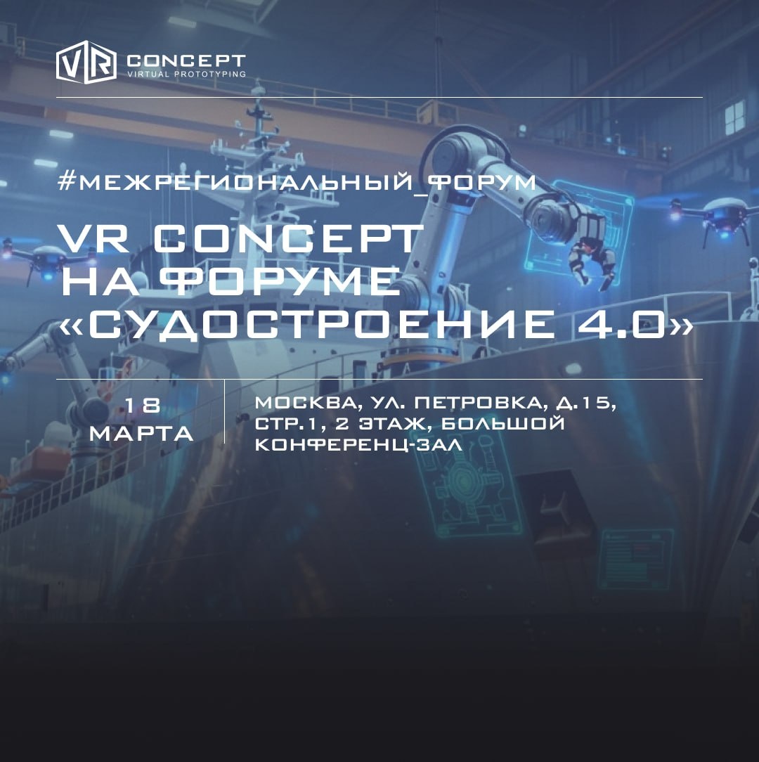 Завтра, 18 марта, принимаем участие в Московском Межрегиональном Форуме «Судостроение 4.0: Искусственный интеллект, беспилотные технологии и электрофлот», организованном МТПП. Судостроение переживает самую масштабную цифровую трансформацию за полвека. Искусственный интеллект в проектировании, автономная навигация, переход на электротягу — это не будущее, а настоящее, определяющее конкурентоспособность предприятий. О чём будем говорить: 🔹 Роль бизнеса в государственно-частном партнёрстве в рамках концепции «Судостроение 4.0» 🔹 Искусственный интеллект и цифровая трансформация 🔹 Беспилотные технологии и автономное судовождение 🔹 Электрофлот и экологическая устойчивость 🔹 Кадровый потенциал отрасли 🔹 Межрегиональная Биржа Судостроения Где и когда: 📍 Москва, ул. Петровка, д.15, стр.1, 2 этаж, Большой конференц-зал 📅 18 марта 2026 года ⏰ 10:00 – 14:00 🎟 Участие бесплатное #VRConcept #Судостроение40 #МТПП #ЦифроваяТрансформация #ИИвПромышленности #БеспилотныеТехнологии #Электрофл
