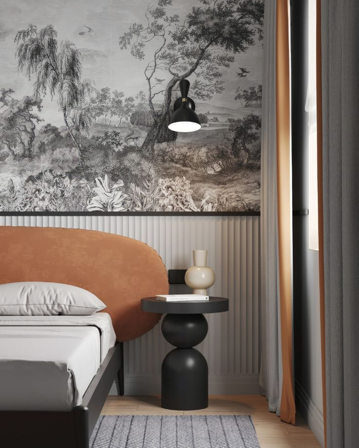 - Освещение. Общий свет (потолочный светильник) + прикроватный свет (бра, настольная лампа, торшер). Гости должны иметь возможность читать перед сном, не вставая с кровати.