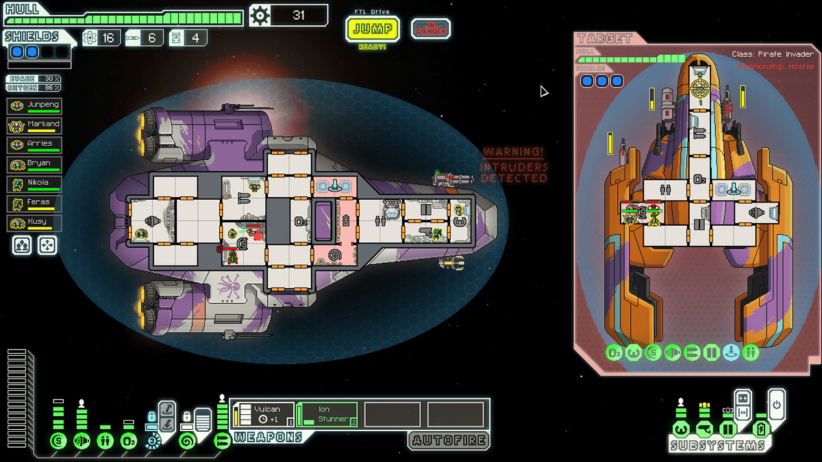 Кислород закончился раньше, чем щиты. Инженер застрял в отсеке. Дверь можно открыть, но если я это сделаю, мы все умрём. Воздух уйдёт из всего корабля, системы отключатся, и мы станем дрейфующим металлом в пустоте. Я закрыл дверь. Инженер погиб через двадцать секунд. Корабль выжил ещё три прыжка. Потом нас расстреляли пираты, потому что щиты так и не восстановились, а нового инженера я не успел нанять. Это FTL. Здесь нет правильных решений. Только те, которые дают тебе ещё один прыжок. FTL не про героизм. Не про спасение галактики. Не про то, чтобы все выжили. Здесь ты управляешь кораблём, который летит через космос, полный врагов, пожаров, пробоин и случайных событий, которые убивают твой экипаж быстрее, чем ты успеваешь их заменить. Ты распределяешь экипаж по отсекам: один в двигатели, один в щиты, один в оружие. Корабль атакуют. Пробоина в медблоке. Пожар в кислородной системе. Враги телепортировались на борт и режут твоих людей. Ты выбираешь: отправить экипаж тушить пожар или защищ