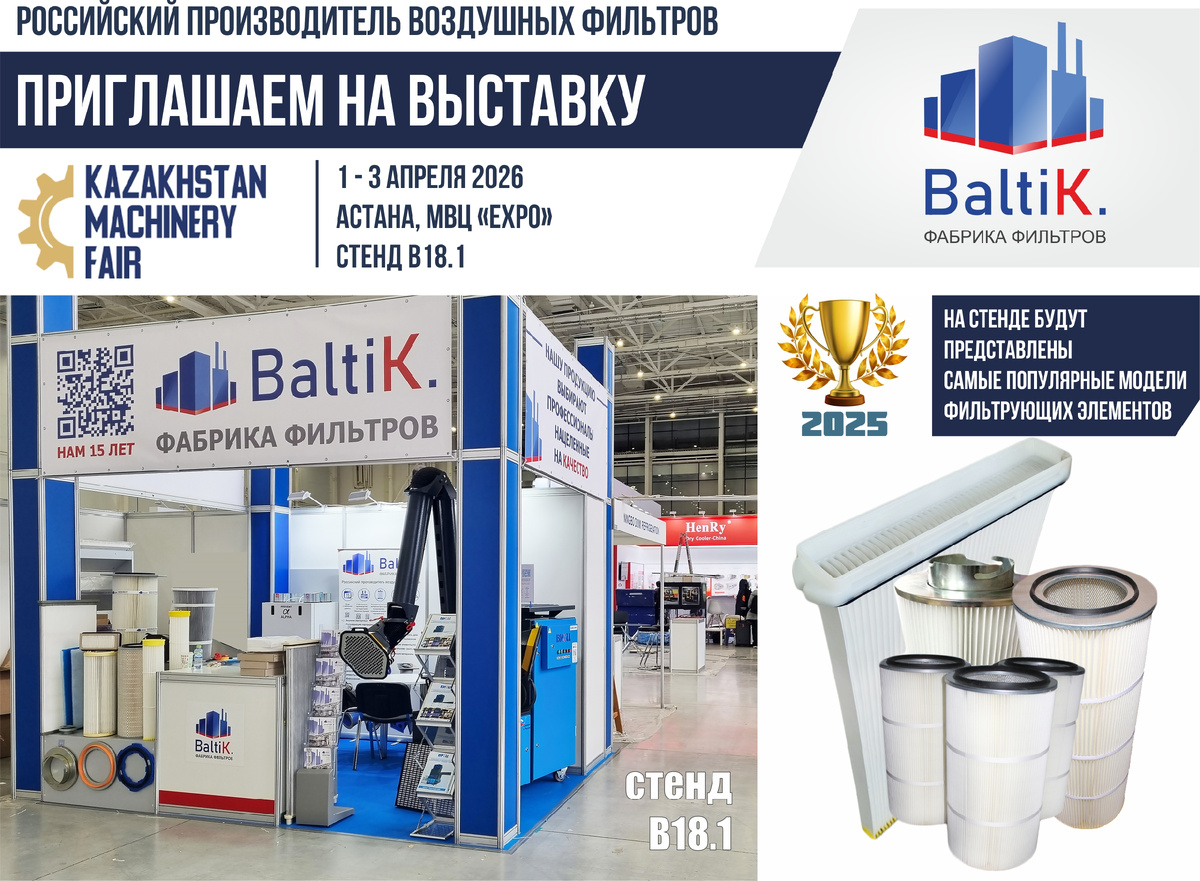 Уважаемые коллеги и партнёры! 1-3 апреля в Международном выставочном центре «EXPO» (Астана) состоится международная выставка - Kazakhstan Machinery Fair. На крупнейшей экспозиционной площадке встретятся ведущие производители и специалисты отрасли машиностроения и металлообработки в Казахстане и Центральной Азии. Машиностроительная отрасль Казахстана демонстрирует устойчивый рост, о чём свидетельствует участие 250 экспонентов и более 4 000 специалистов. Географический охват мероприятия включает 18 стран участниц, при этом 74 экспонента представляют зарубежные компании. Фабрика фильтров BaltiK. в этом году впервые принимает участие в данном мероприятии и с гордостью представляет фильтрующие элементы собственного производства. На протяжении нескольких лет наше предприятие активно поставляет аналоги фильтрующих картриджей на территорию Казахстана, поэтому многие промышленные предприятия заочно знакомы с нашей продукцией. Будем рады лично встретиться с нашими партнёрами на стенде № B18.1, з