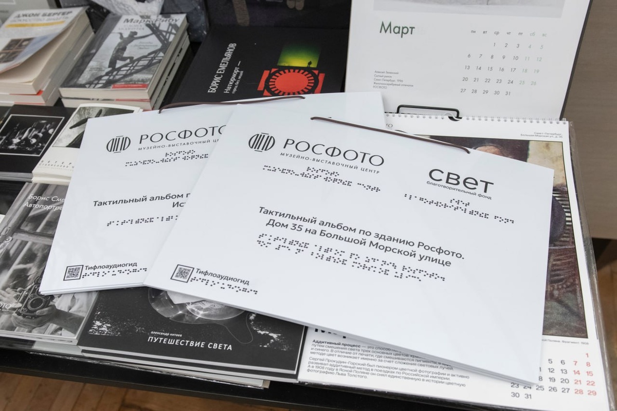 В книжном магазине РОСФОТО теперь есть тактильные альбомы для незрячих и слабовидящих посетителей: - по зданию РОСФОТО. Дом 35 на Большой Морской улице - по постоянной экспозиции РОСФОТО. История фотографии Их можно взять у администратора для самостоятельного изучения на территории музейного магазина. Каждая страница альбомов сопровождается qr-кодом для прослушивания аудиогидов с тифлокомментариями. Также они размещены на сайте музея. Проект реализован с особым вниманием и точностью благодаря сотрудничеству с Передвижной лабораторией любительского тифлокомментирования и поддержке Благотворительного Фонда «СВЕТ». Ждем вас в гости на Большой Морской, 35 Ваш РОСФОТО📷 Telegram VK MAX
