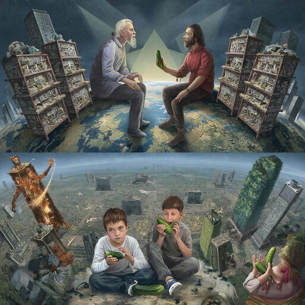 — Смотрите, — показал Он вниз. — Они возвели свои серванты. Набили их барахлом. А теперь из-за своей алчности, во имя власти, воюют с теми, кто по их мнению бедней.