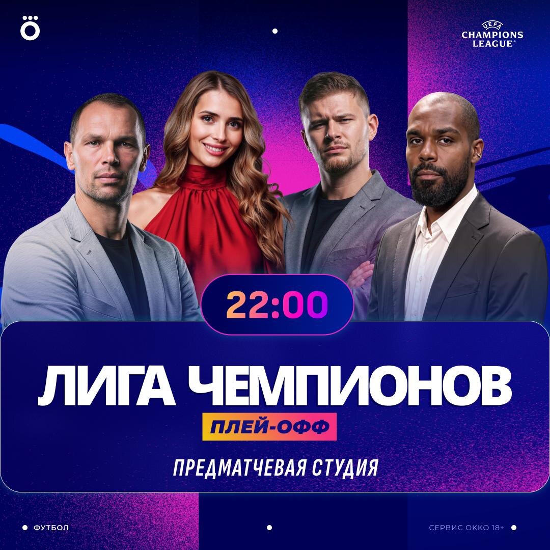 Ответные матчи 1/8 финала ЛЧ точно будут зрелищными 🏆 Дарья Исаева, Дмитрий Чельцов, Брайан Идову и Сергей Игнашевич встретятся в лигочемпионской студии. Скоро узнаем, ждать ли камбэков от «Челси» и «Ман Сити», а также сможет ли удивить нас «Спортинг» и «Байер». 💫 Смотри в 22:00 в Okko: https://okko.tv/s/yfz