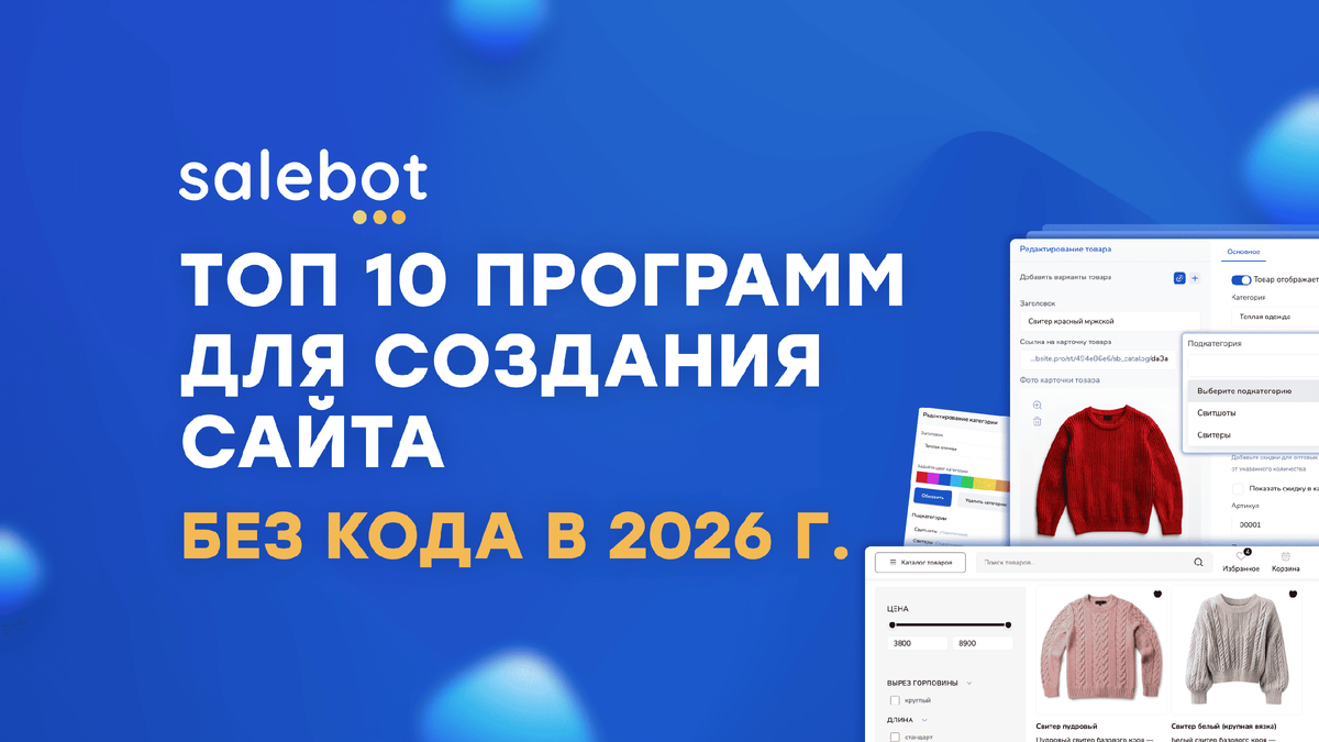 Некоторые платформы ориентированы именно на e-commerce, а другие — на маркетинговые воронки. Например, на Salebot можно создать лендинг или сайт для продажи товаров и подключить автоматическую обработку заказов через чат-ботов и CRM.