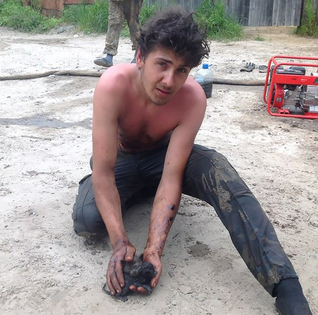 Авария случилась летом 2015-го: прорвало нефтепровод «Роснефть-Юганскнефтегаз», проходивший по дну реки, и нефть разлилась на 800 метров вокруг. Анатолий был в числе ликвидаторов аварии. «В процессе работы случайно услышал, как где-то на одной из затопленных водой и нефтью дач кричит котенок. Душа не выдержала – отправился посмотреть, мало ли что... Пройдя сколько можно в болотниках, обнаружил жуткую картину: к затопленному дому прибило доску, за доску лапками держатся два котенка, один из них по шею в нефти... Недолго думая, пошел за ними, зашел по пояс в нефтяру, земля засасывает, полные болотники воды с нефтью... взял на руки, прижал, и понес на берег, где позже окутал их в футболку и грел», – рассказал парень в соцсети. Котята остались жить со спасителем — его овчарка приняла малышей, как родных. Подписывайтесь на «Подвиги» в MAX: https://max.ru/podvigi