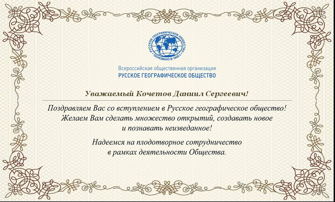 ✅ Стал членом Русского географического общества!