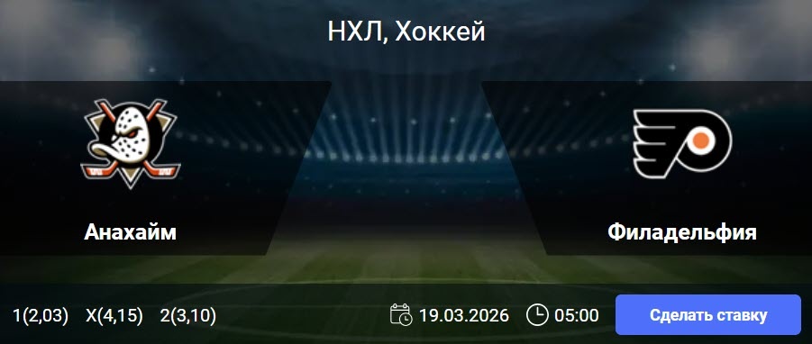 ) Статистика Анахайма: 68% побед в домашних матчах этого сезона. Третья команда НХЛ по количеству бросков в створ за игру – 30,3. В последние пять сезонов «утки» на своём «пруду» только один раз проиграли Филадельфии. Статистика Филадельфии: Филадельфия в среднем за матч получает в свои ворота 29,2 броска. «Летуны» только двадцать третьи по средней результативности – 2,85 шайб за игру. В гостях у филадельфийцев очень низкий процент побед – 46,67. 🎯 П1 🎲 (2,03) 👉 СДЕЛАТЬ СТАВКУ 🎁 ФРИБЕТ WINLINE - 3000₽ (промокод: BETWIN) 👉 СМОТРЕТЬ ПОДРОБНЫЙ ПРОГНОЗ