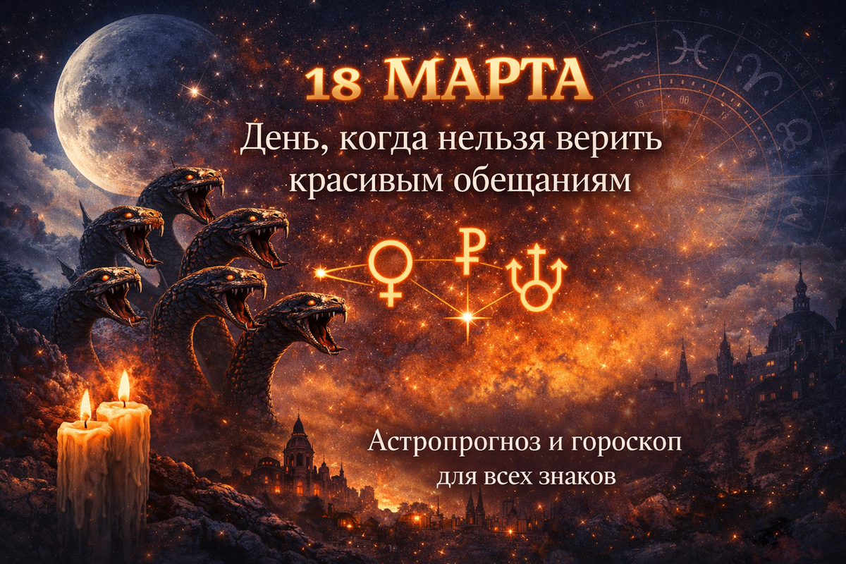 18 марта 2026 года - день, в который внешне привлекательные предложения, слова, обещания и даже чувства могут оказаться совсем не тем, чем кажутся. Это один из самых тонких и опасных дней недели: 29 лунные сутки, символ которых - Гидра, традиционно связаны с искушениями, скрытыми угрозами, внутренней слабостью и ситуациями, где ошибка начинается с малого, а последствия оказываются куда серьёзнее.