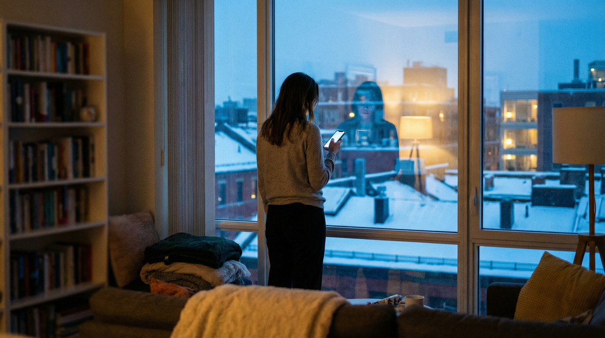 Олег стоял в ванной, шумела вода. Я поставила кружку на полку у зеркала в коридоре и пошла на кухню. Просто пошла. Встала у окна. Девятый этаж, внизу — крыши в мокром снегу, январь, темнеет рано.