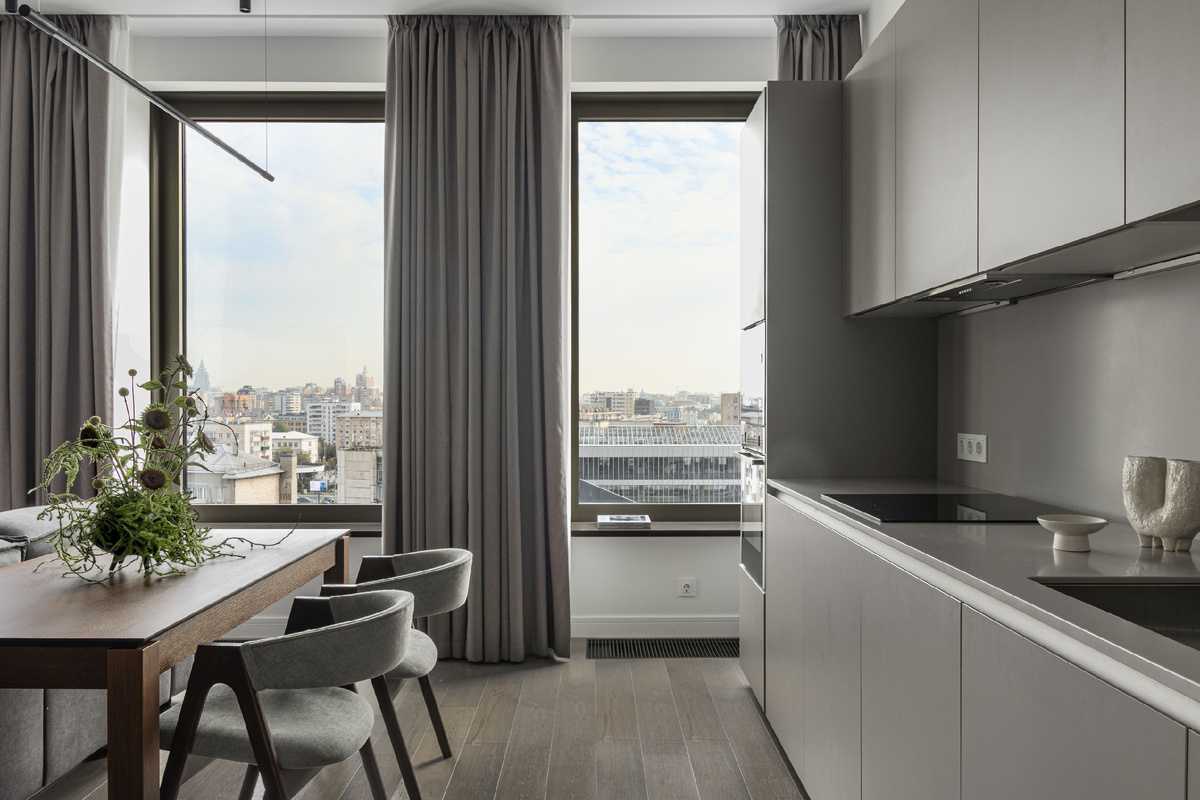 Локация: Москва, Пресненский район, ЖК «Lucky» Площадь: 90 кв. м Команда: дизайнер Анна Сидорова, студия “Точка дизайна” Фото: Варвара Чеснокова Стилист: Мария Маркус Стиль: Современный минимализм Изюминкой объекта был вдохновляющий вид на сталинские высотки и Москву-сити из панорамных окон. Он сразу сдавался с качественной отделкой от застройщика, которая позволила в рекордно короткие сроки реализовать современный интерьер для сдачи в аренду. Оформление должно было подходить активно работающему молодому человеку или паре – так заказчик представлял себе будущих жильцов. Это уже не первый для клиента опыт работы с дизайнером, поэтому деловое общение проходило в доверительной обстановке. Так как комплекс премиальный, планировка от застройщика оказалась довольно удачной – переносить функциональные зоны не требовалось. Здесь есть все для комфортной динамичной жизни, от отдельной постирочной и большого санузла до гардеробной с продуманной системой хранения одежды и аксессуаров. Центром прит