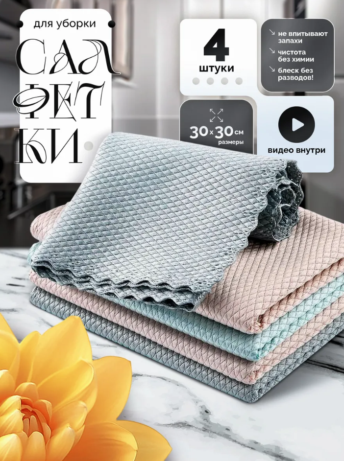 Идеальный набор для тех, кто хочет чистоту без усилий и красивую кухню каждый день. Мягкие, прочные, многоразовые и очень удобные — эти тряпки реально умные и станут вашими фаворитами на кухне. Берите смело — 4 штуки хватит надолго, а качество на высоте!