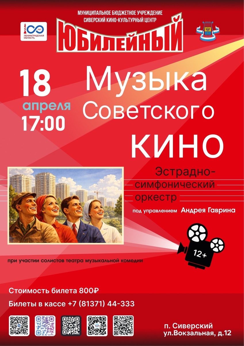 СПб под управлением Андрея Гаврина , где прозвучат любимые мелодии из советских фильмов! Вас ждут знаменитые композиции, написанные выдающимися композиторами советской эпохи. Вместе мы вспомним лучшие моменты нашего кинематографического наследия и насладимся чарующими звуками живого исполнения. Мы приглашаем всех ценителей искусства окунуться в атмосферу советского кино и насладиться великолепием оркестровой музыки вместе с нами! 💥В концерте примут участие солисты Санкт-Петербургского театра музыкальной комедии ! 📅 18 апреля в 17.00 🏛 МБУ "СККЦ "Юбилейный" (п. Сиверский, ул. Вокзальная, 12, тел. 8(81371) 44333 Цена билета: 800 руб. Билеты можно приобрести в кассе МБУ "СККЦ "Юбилейный" и онлайн на https://kinowidget.kinoplan.ru/seats/2992/10073235/69b2c9b23c0000a80071b19b?date=2026-03-11&platform=widget&lang=ru&kinosi Показать полностью... Присылайте ваши новости в сообщения нашего канала Источник: Открыть