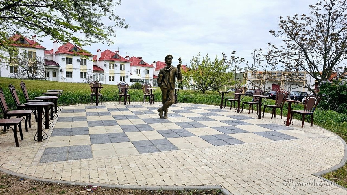 25 июля 1900 года — дата рождения Остапа Бендера, главного героя романов Ильи Ильфа и Евгения Петрова «Двенадцать стульев» и «Золотой телёнок». На фото памятник Остапу Бендеру в Элисте (в Шахматном городе). Идейным вдохновителем установки памятника стал капитан сборной Калмыкии по шахматам, президент Республики Калмыкия с 1993 года и по совместительству президент Международной шахматной федерации с 1995 года Кирсан Николаевич Илюмжинов. Замыслом памятника была шахматная тема: правой рукой Бендер бережно прижимал к груди шахматную доску, а в левой держал шахматную фигуру — коня. Позади Бендера стоят 12 стульев со столиками, как будто приглашающими на сеанс одновременной шахматной игры. По преданию, изначально у Остапа в руке была пешка, которая каждую ночь необъяснимо исчезала. Фото автора (весна 2025). Подписывайтесь на наш канал, чтобы не теряться и увидеть огромное количество удивительных мест из наших путешествий. Мы рассказываем только о том, где побывали сами. Другие крутые локаци