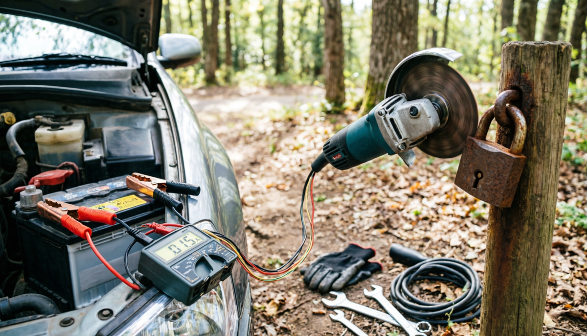 Я однажды поехал на дачу закрывать сезон — банально нужно было срезать старый навесной замок. Болгарка с собой есть, аккумуляторная, на 18V… но батарея, как назло, села. Генератора нет, розетки тоже. Зато рядом машина с обычным аккумулятором на 12V. Тогда я впервые полез разбираться, как запитать инструмент «в поле» без риска его сжечь. Напрямую подключить можно, и инструмент даже запустится, но работать он будет значительно слабее, с потерей мощности до 40–60%, при этом возрастает ток и перегрев двигателя. Это критично: при длительной нагрузке мотор может перегреться, щётки быстрее изнашиваются, а электроника — выйти из строя. Я пробовал этот вариант «на коленке» — да, диск крутится, но: 👉 Вывод: как временная мера — да, но это риск угробить инструмент. Проблема в том, что двигатель рассчитан на 18V, а при 12V он компенсирует нехватку напряжения увеличением тока. Это приводит к перегреву обмоток и снижению КПД, особенно под нагрузкой. Проще говоря: Это базовая электротехника, но в по