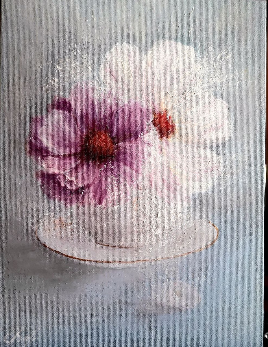 Всем доброго дня! Сдедала маленькую работу Космет по мк А.Озеровой . Холст на картоне, 18х24 см, акрил.