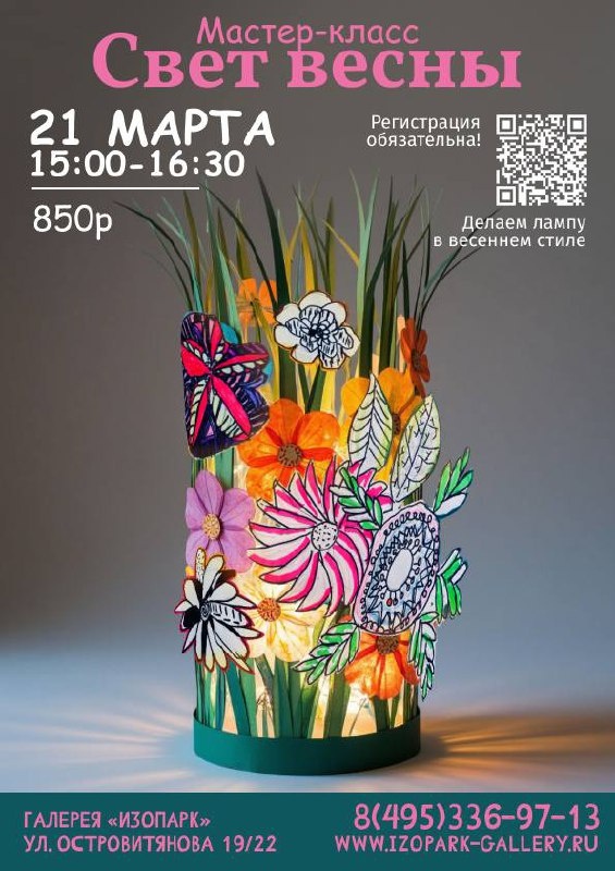 🌼 Мастер‑класс «Свет весны» Приглашаем детей в волшебное творческое путешествие — на мастер‑класс по созданию декоративного светильника на весеннюю тематику! Юные мастера превратят простые материалы в настоящее произведение интерьерного дизайна , которое украсит комнату и подарит весеннее настроение. 👉850 руб 👉ЗАПИСЬ