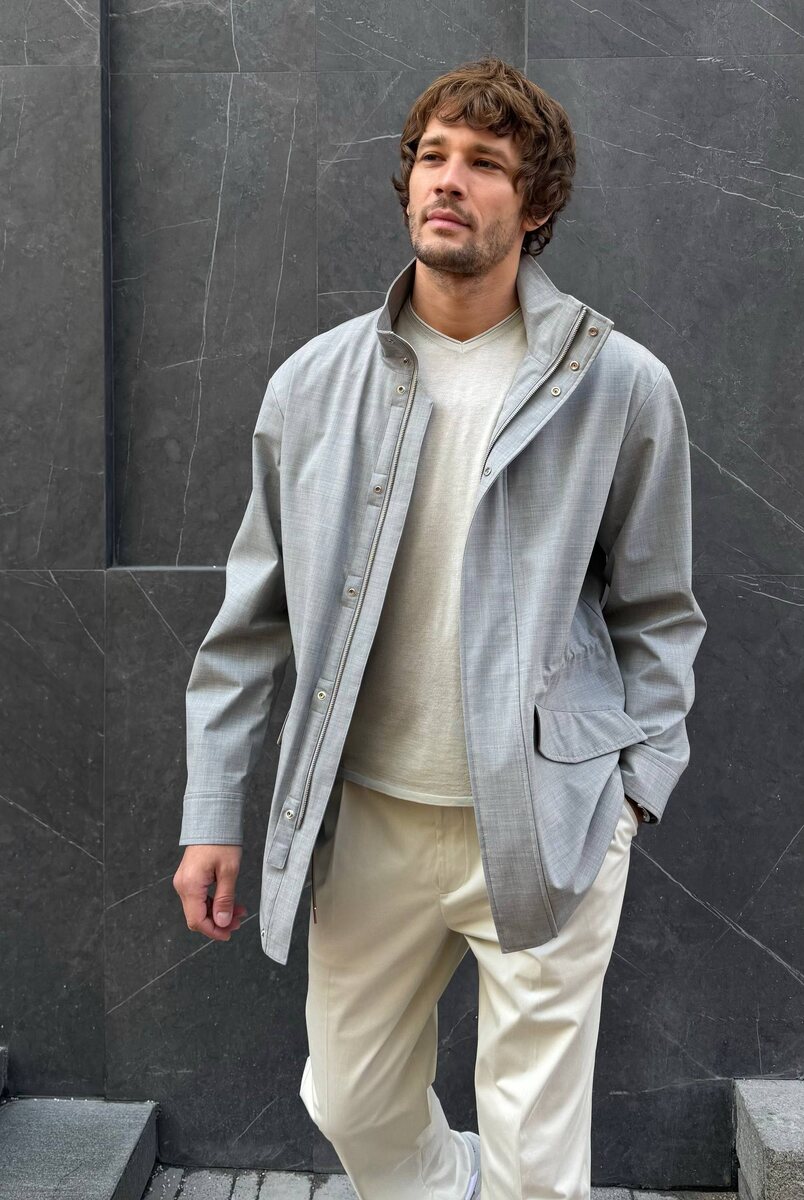 Для этой модели мы выбрали технологичный материал из шерсти мериноса — легкий, мягкий и практичный. Чтобы ткань держала форму и отталкивала влагу, на нее нанесли специальное покрытие, которое не пропадет после химчистки. Внутри — согревающая подкладка из хлопкового трикотажа, а в рукавах гладкий нейлон, чтобы куртку было удобно надевать поверх свитера или пиджака. Готовые образы с ветровкой Marble можно найти на сайте и в приложении 12 STOREEZ 🤍 12 STOREEZ