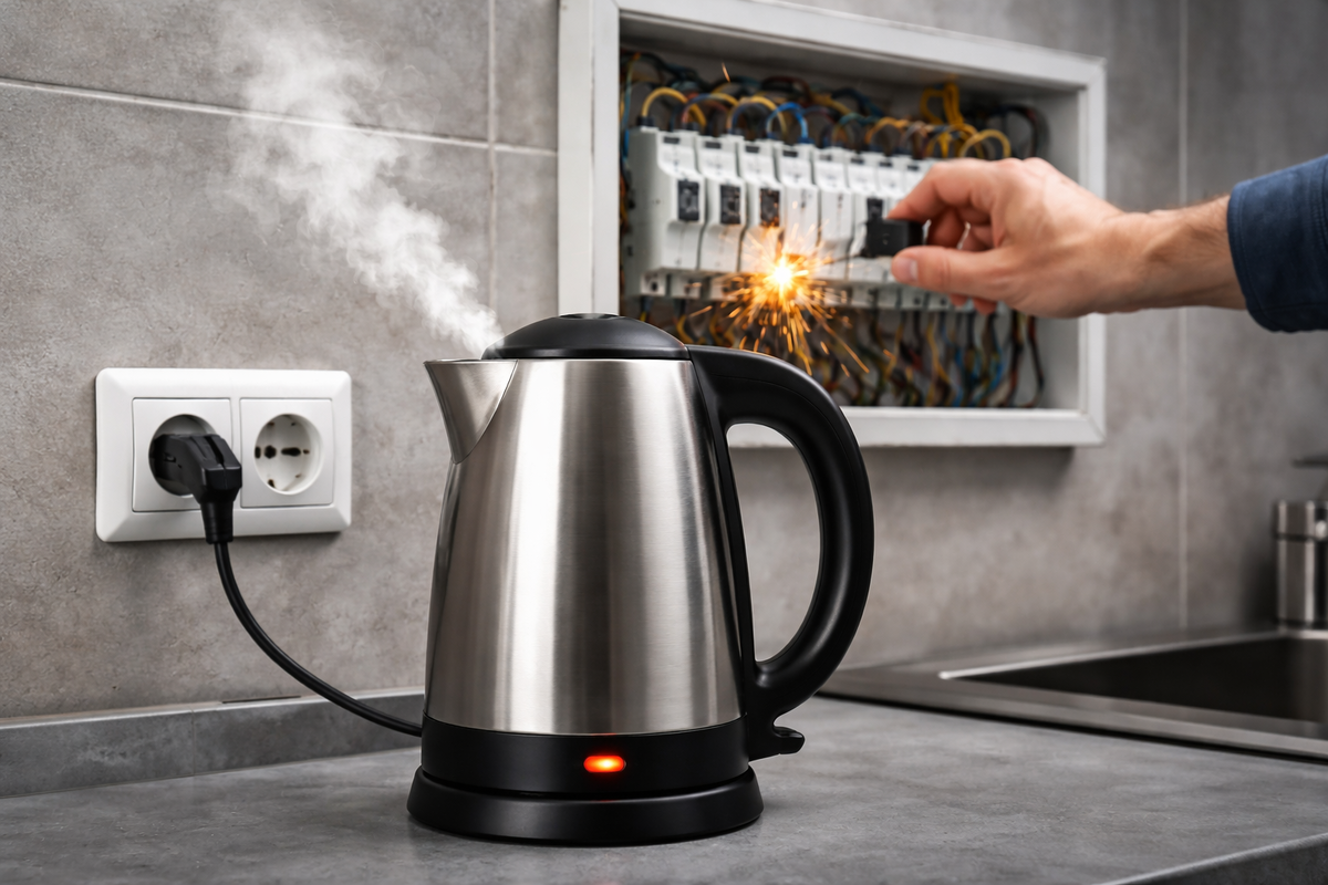Электрочайник — один из самых мощных бытовых приборов на кухне, поэтому именно при его включении часто возникают проблемы с электросетью. Если автомат в щитке выбивает каждый раз, это может быть как обычная перегрузка, так и признак неисправности чайника, розетки или проводки. Игнорировать такую ситуацию нельзя — это вопрос безопасности.