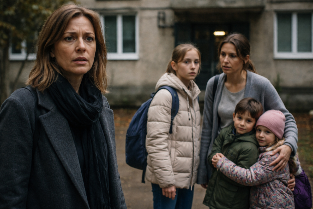 Я не успела даже осмыслить это, потому что через пару минут дверь подъезда снова открылась. На крыльцо выбежли двое детей — мальчик лет восьми и девочка помладше, в розовой шапке, которая всё время сползала ей на глаза. За ними вышла женщина лет тридцати пяти, худенькая, в домашнем кардигане и с тем лицом, которое у многих появляется от хронического недосыпа и привычки всё тянуть одной рукой.