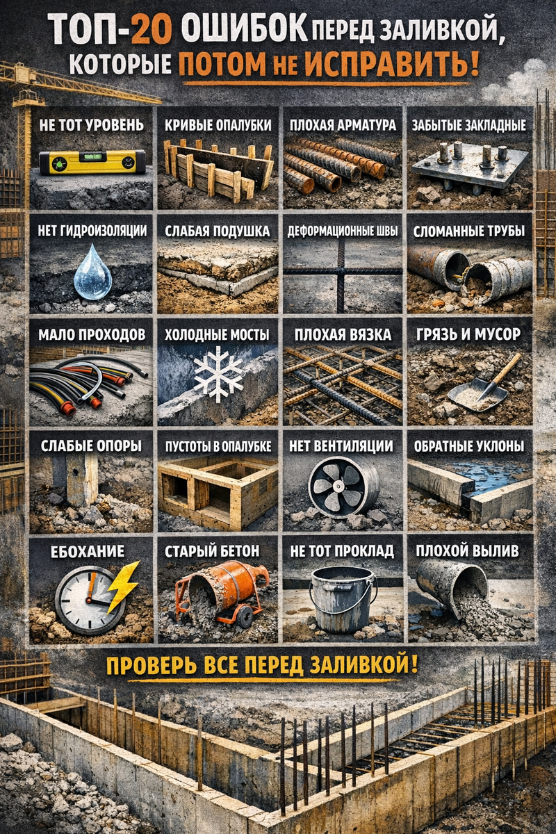 Π― ΡΡΠΎ ΠΏΠΎΠ²ΡΠΎΡΡΡ Π½Π° ΠΊΠ°ΠΆΠ΄ΠΎΠΌ ΠΎΠ±ΡΠ΅ΠΊΡΠ΅: ΠΎΡΠΈΠ±ΠΊΠΈ ΠΏΠ΅ΡΠ΅Π΄ Π·Π°Π»ΠΈΠ²ΠΊΠΎΠΉ ΠΏΠΎΡΡΠΈ Π²ΡΠ΅Π³Π΄Π° Π΄Π΅ΡΡΠ²ΡΠ΅ ΠΈ ΡΠΏΠΎΠΊΠΎΠΉΠ½ΡΠ΅ Π² ΠΈΡΠΏΡΠ°Π²Π»Π΅Π½ΠΈΠΈ. ΠΠΎΡΠ»Π΅ Π±Π΅ΡΠΎΠ½Π° ΡΠ΅ ΠΆΠ΅ ΡΠ°ΠΌΡΠ΅ ΠΎΡΠΈΠ±ΠΊΠΈ ΡΡΠ°Π½ΠΎΠ²ΡΡΡΡ ΡΠΊΡΡΡΡΠΌΠΈ Π΄Π΅ΡΠ΅ΠΊΡΠ°ΠΌΠΈ, ΠΏΠΎΡΠ΅ΡΡΠ½Π½ΠΎΠΉ Π³Π΅ΠΎΠΌΠ΅ΡΡΠΈΠ΅ΠΉ, Π½Π΅ΡΠ΄ΠΎΠ±Π½ΡΠΌΠΈ ΠΏΡΠΎΡ ΠΎΠ΄Π°ΠΌΠΈ ΠΈ ΡΠ·Π»Π°ΠΌΠΈ, ΠΊΠΎΡΠΎΡΡΠ΅ ΡΠΆΠ΅ Π½Π΅ ΠΏΠΎΡΠΈΠ½ΠΈΡΡ Β«Π°ΠΊΠΊΡΡΠ°ΡΠ½ΠΎΒ». ΠΠΈΠΆΠ΅ β Π΄Π²Π°Π΄ΡΠ°ΡΡ ΡΠ°ΠΌΡΡ ΡΠ°ΡΡΡΡ ΠΏΡΠΎΠΌΠ°Ρ ΠΎΠ², ΠΊΠΎΡΠΎΡΡΠ΅ Π½Π° ΡΠ°ΡΡΠ½ΠΎΠΌ Π΄ΠΎΠΌΠ΅ Π²ΡΡΡΠ΅ΡΠ°ΡΡΡΡ ΠΏΠΎΡΡΠΎΡΠ½Π½ΠΎ.