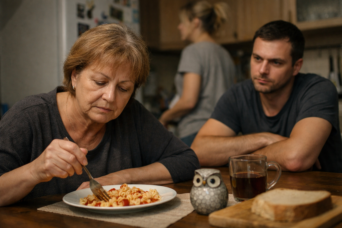*Вот оно*, - подумала я. *Вот то, что я каждый раз чувствую, но не могу назвать. Это не грубость. Это хуже - это хозяйская логика. Я здесь гость, которого терпят. Гость, который должен доедать, потому что еда денег стоит.*