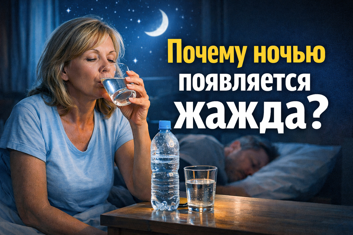 Знакомая ситуация: просыпаешься среди ночи с ощущением сухости во рту, идёшь на кухню, пьёшь воду… и вроде бы всё хорошо. Но если это происходит регулярно — организм явно пытается что-то сказать. Разберёмся спокойно, без страшилок и «воды», почему это происходит и когда стоит обратить внимание. С возрастом чувство жажды притупляется. Мы просто меньше пьём днём, чем нужно, и организм «догоняет» ночью. Что важно: 👉 Норма — ориентироваться не только на «хочу пить», а на цвет мочи (светлая — всё в порядке). Очень недооценённая причина. Особенно актуально в отопительный сезон. Признаки: Решение простое: Поздний ужин — частая причина ночной жажды. Особенно если это: Соль задерживает воду и вызывает жажду спустя несколько часов — как раз ночью. 👉 Если тянет на «что-нибудь солёное» вечером — почти гарантировано проснётесь пить. Многие думают: «Ну что там один бокал вина». Но организм считает иначе. Что происходит: Особенно чувствительны люди старше 40–50 лет — восстановление водного баланса