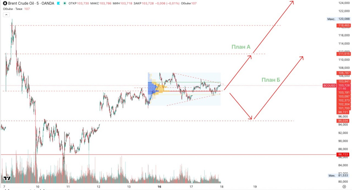 Делюсь наблюдениями. Кто читал утром мой пост - продолжу мысль. Сейчас все внимание мировой общественности приковано к ситуации на Ближнем Востоке. В начале недели я делился своими соображениями в торговом плане и техническом анализе ситуации в нефти. Учитывая бодрое закрытие предыдущей недели и хорошую консолидацию выше 102 долл, рискну предположить, что осведомленные участники ждут развязки в Ормузском проливе, а именно - операцию СЩА "Железный Якорь" для попытки обеспечения безопасности движения по проливу танкеров. Точка невозврата уже пройдена. Все ждут 19го числа... Иран привел в готовность план "Месть пустыни", нацеленный на полное уничтожение нефтяной инфраструктуры Саудовской Аравии, в качестве плана Б (Если у США будет успех в Ормузе). Цель удара - 150-200 долларов за баррель марки brent, для дальнейшего давления стран региона на политику США. Текущее состояние рынка - консолидация, или сжатие пружины. Пристегните ремни, будет горячо... P.S. Сначала думаем о рисках, а