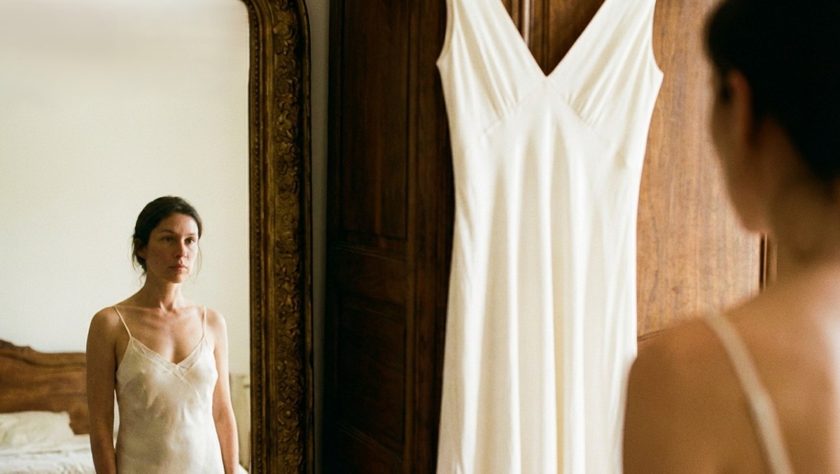Марина провела пальцами по белому платью, висевшему на дверце шкафа. Не пышному, не с кринолином — она всё-таки не двадцатилетняя девчонка.