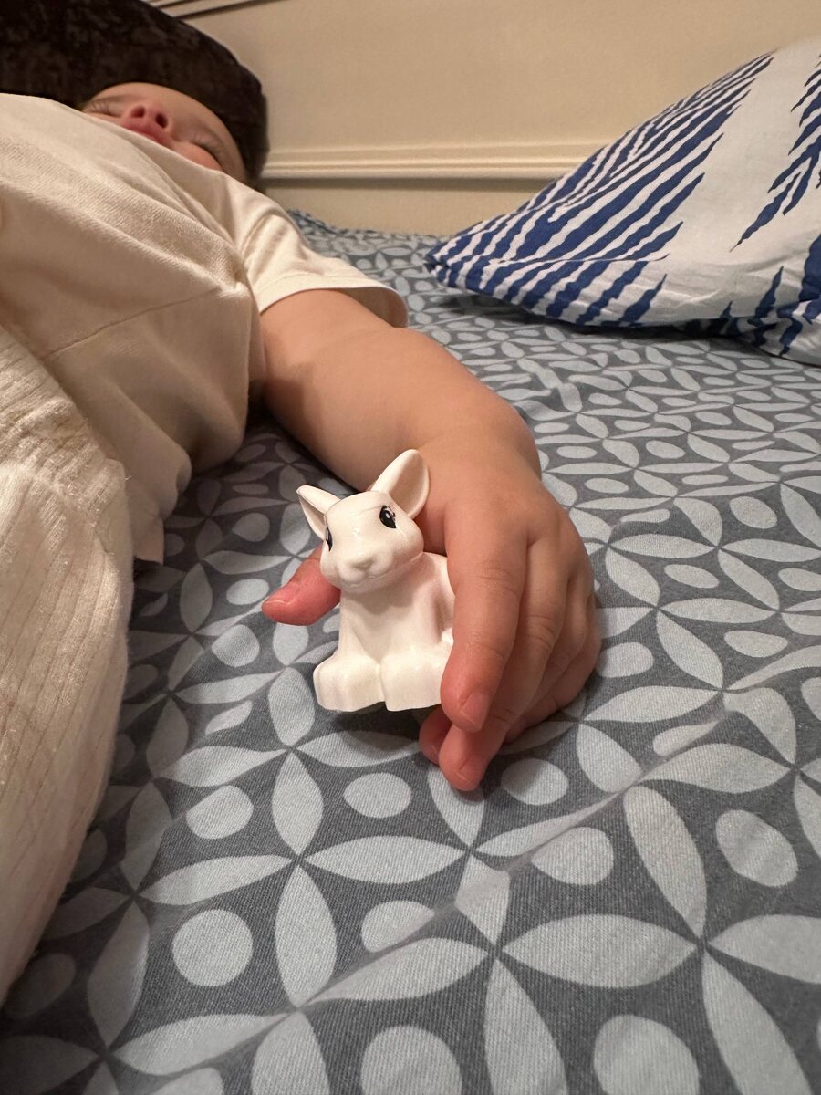 Минут 30 два взрослых человека искали по всей квартире этого зайца, потому что маленький человек не хочет без него спать и плачет навзрыд