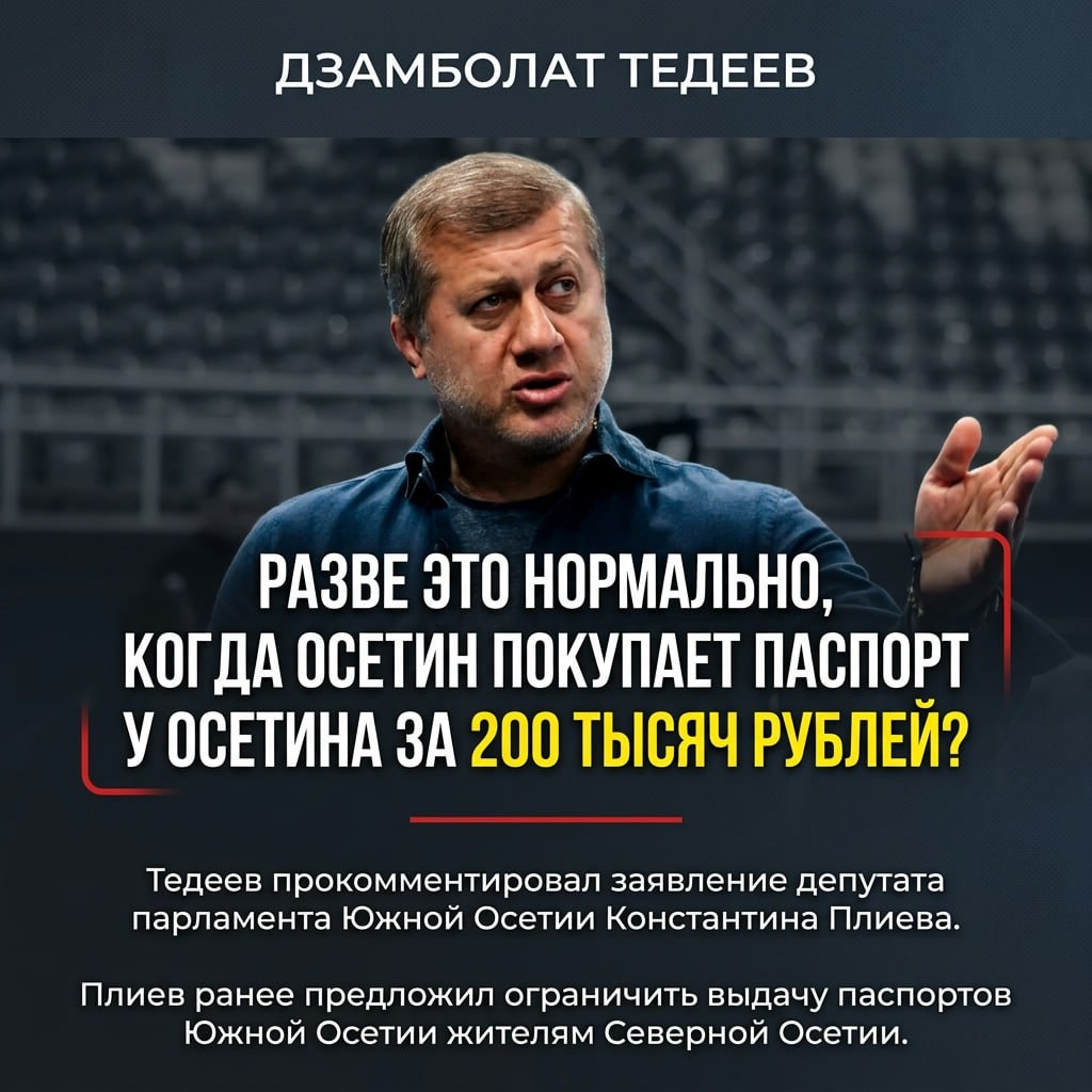 ❗️Дзамболат Тедеев о заявлении депутата парламента Южной Осетии Константина Плиева, который предложил ограничить выдачу паспортов жителям